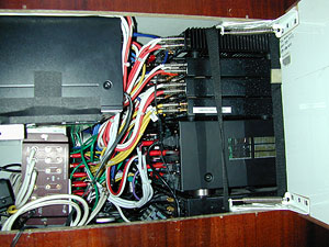Normal racking was impossible, and it took some creativity to integrate all the necessary components in such restricted space and with intermittent power and poor ventilation. During the reengineering, the system received new surround sound processing and amplification, XM radio and other upgrades.