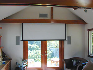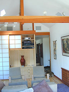 Projection Equipment can be hidden with shoji screen. Within seconds, this room can transform from a meditation space into full scale hi-definition home theater with 150 watt per channel 7.1 surround sound. |